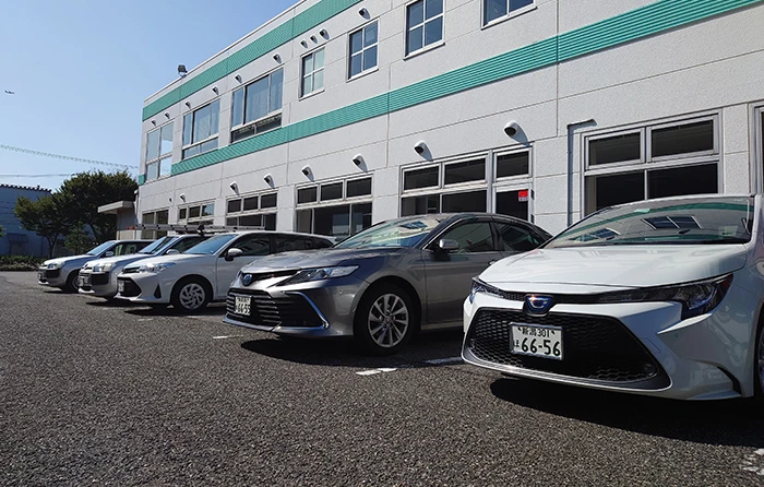 営業用車輛をハイブリッドカーに順次切り替えています。常に環境にやさしい運転を心掛けるように努めています。